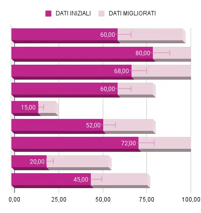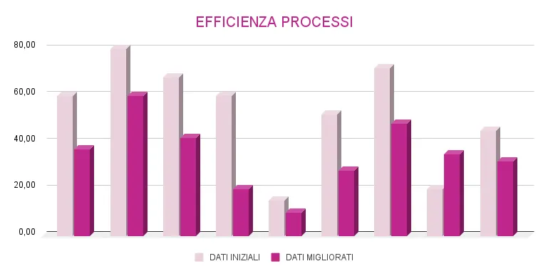 Questo grafico mostra i netti miglioramenti raggiunti in diverse aree strategiche. L'analisi accurata e le azioni mirate che abbiamo implementato hanno portato a risultati concreti riducendo di molto le percentuali di errore.
